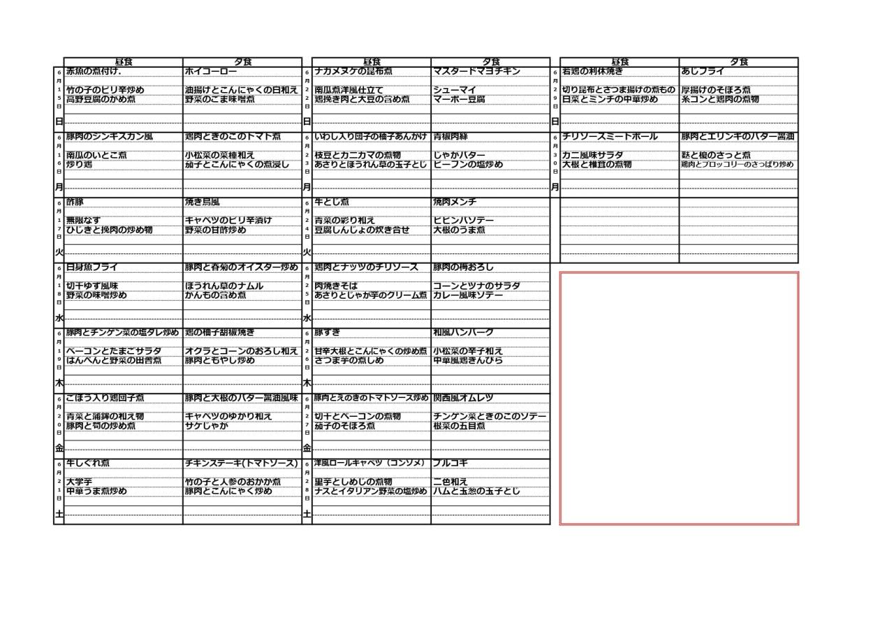 6月 普通食 | 月の献立 | 北海道札幌市中央区 バスセンター前駅【ママンクッキングサービス株式会社】